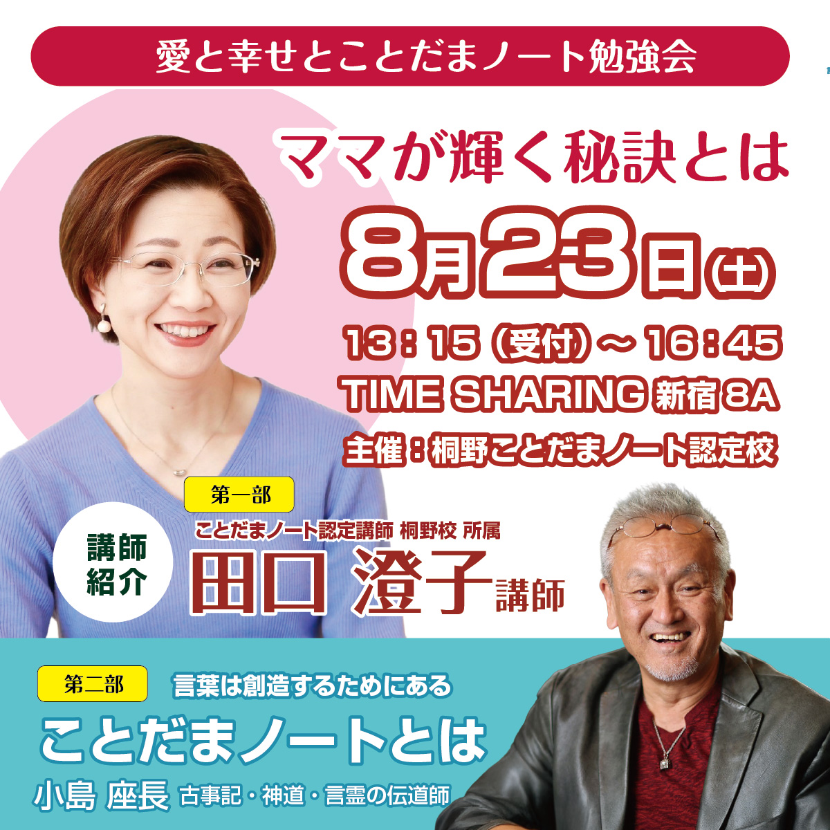 ◤ーーーーーーーーーーーーーーーーーーーーーーーーーーーーー◥日時:2025年8月23日㈯ 13:15 (受付)~16:45※お子様同伴可会場:TIME SHARING新宿8A住所:東京都新宿区歌舞伎町1丁目1-15東信同和ビル8階持ち物:お気に入りのノートとペン参加費:会員3000円 非会員4000円終了後17:30より懇親会がございます。◣ーーーーーーーーーーーーーーーーーーーーーーーーーーーーー◢